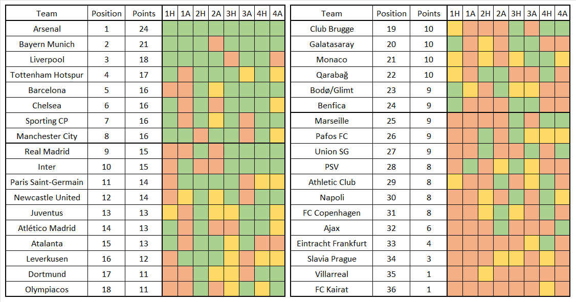 The horrifically titled Champions League league phase is complete for 2025/26. There were not too many surprises in the standings. The most eye-catching name in the top eight is Sporting CP. It’s one thing for Tottenham to rise from Pot 3 in the draw to automatic qualification given the Premier League’s financial power, it’s another for a Primeira Liga team to do likewise.