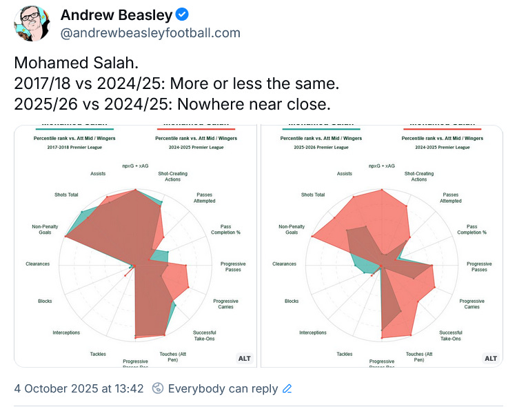 Liverpool have made a stuttering start to the 2025/26 campaign. Even though there are several key players who are not performing close to their best, it is Mohamed Salah who has drawn so much of the media glare.