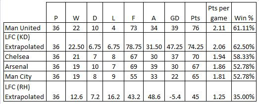 Take a look at his record extrapolated in line with our rivals, with our record under Roy Hodgson similarly included for comparison.