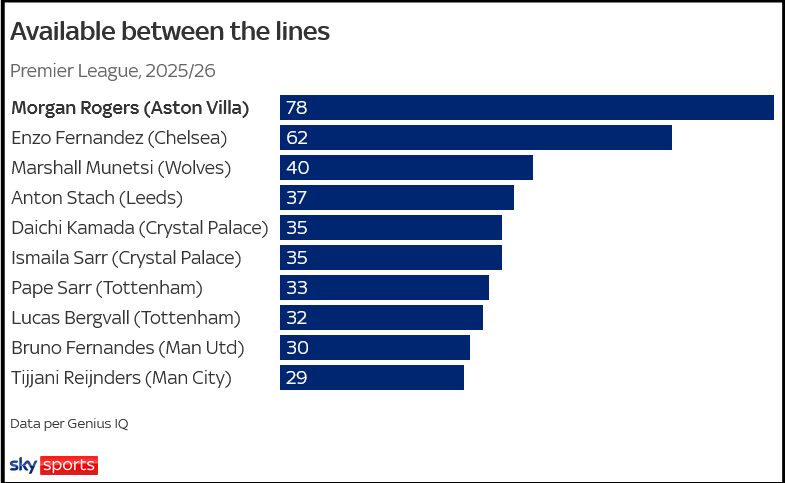 A more recent article via the same source shared a troubling statistic. The issue is one of omission, with Wirtz not featuring in the Premier League’s top 10 players for times they were available to receive the ball between the lines.