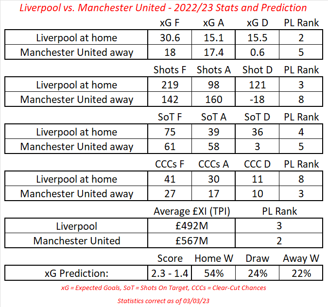 Looking ahead to Sunday, notice too that United have one of the wider gaps between playing at their ground or on the road. Thank goodness the game is at Anfield.