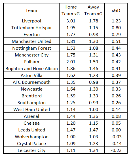 Home advantage clearly plays a role, though perhaps not as much as you might think: the average Premier League team has amassed 1.63 expected goals in front of their own fans and 1.31 on the road this term.