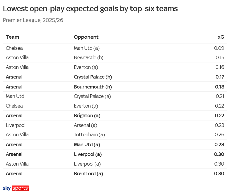 And they deserved a victory, at least according to the expected goal data. The Gunners missed four Opta-defined big chances. It can happen.