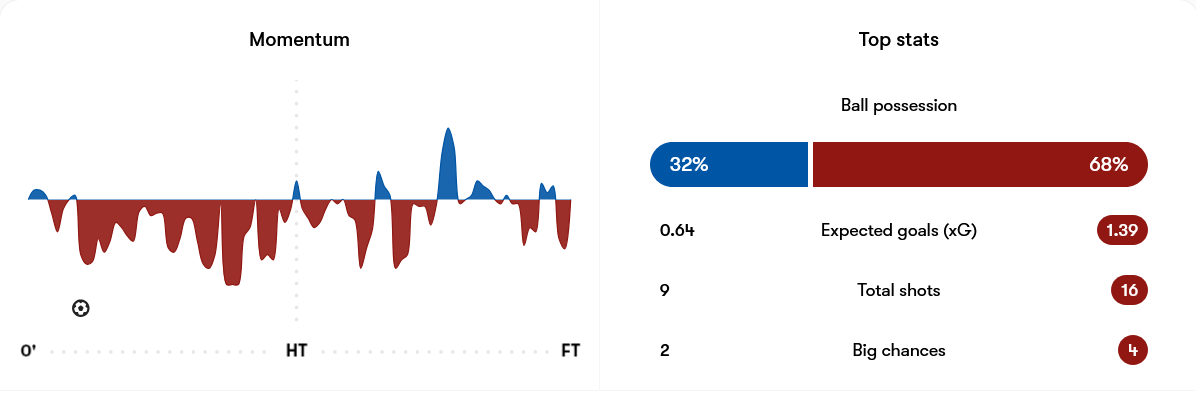 The first was against Nottingham Forest. It should not have counted as the attacker was flagged offside, but it remained in the statistics. Unhelpful things from an analysis perspective can happen, unfortunately. The next one was in the same game after Liverpool had gone behind. That was far from ideal with the Reds struggling to carve out good openings of their own, even if Anthony Elanga’s chance had no impact upon the result.