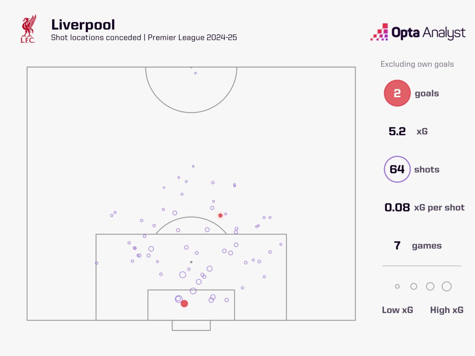They were big in one sense, smaller in another. Notice too from the table below that Liverpool have allowed just two big chances earlier than the 56th minute of matches, albeit then three in those 60 seconds specifically. Maybe that’s the the one point of a game at which Reds fans should genuinely be fearful.