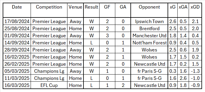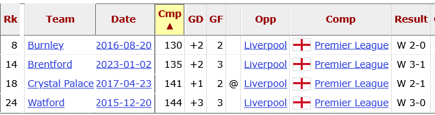 Maybe a combination of fatigue and opponent quality provides the simple explanation to the recent problems. Even so, the last five matches in the above table featured three halves in which the Reds took a single shot with a complete shutout against Wolves.