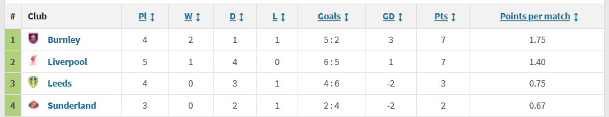 That would still have been the case regardless of the result from Burnley’s visit to Anfield, but failure to beat the Clarets means the Reds don’t even top a mini league of themselves, Burnley, Leeds and Sunderland. It’s not a good look, Arne.