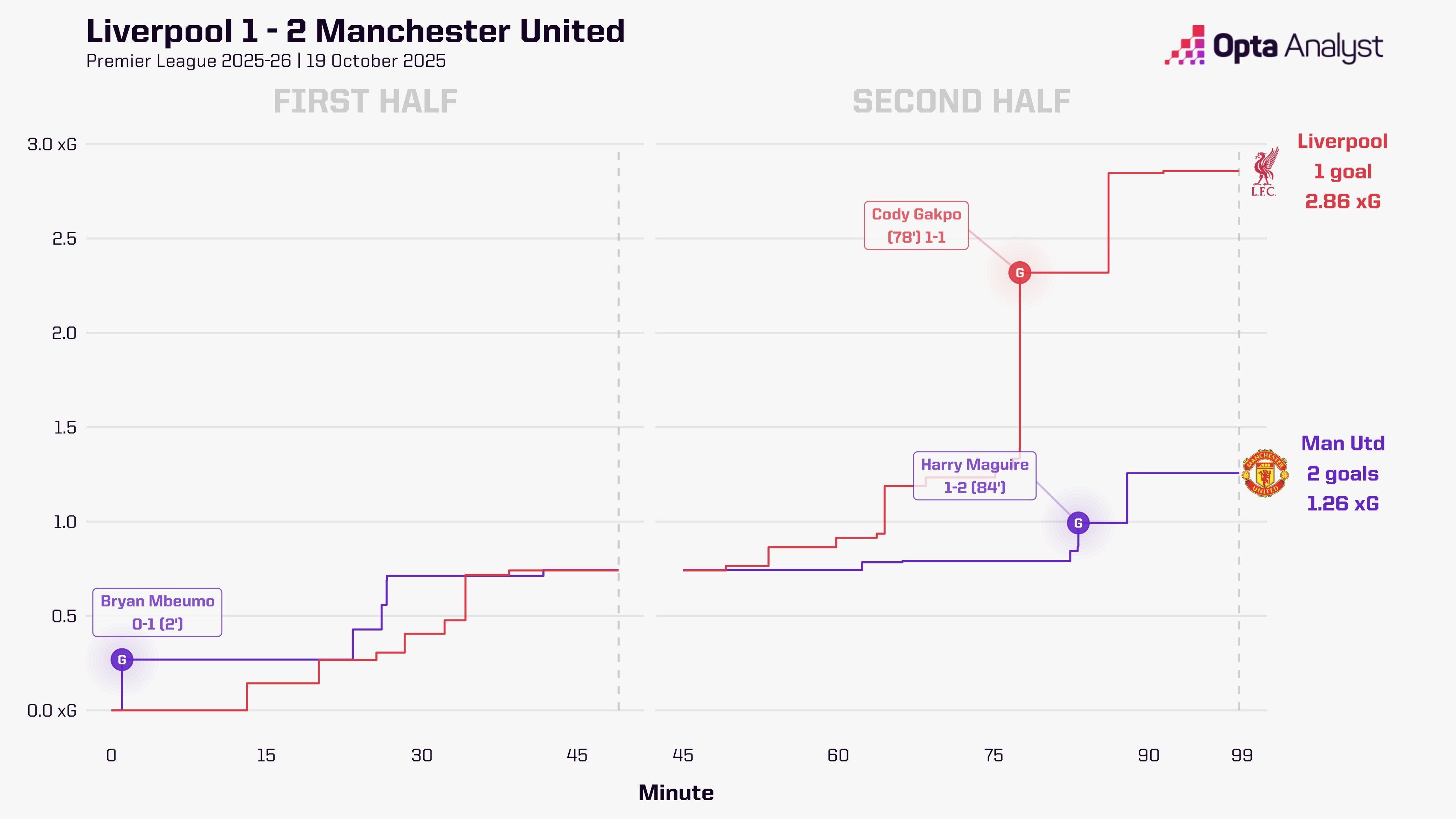 The Reds’ xG was just 0.02 below the total they posted when beating Manchester United 7-0.