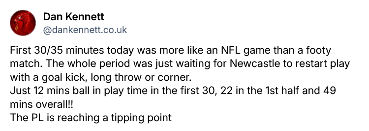 After taking time to get going in the match, the Reds utterly dominated the second half: 1.40 to 0.08 on expected goals, nine shots to two, four big chances to nil. Gordon’s goal was Newcastle’s highest value opportunity of the match, at 0.13 xG, when Ibrahima Konaté alone posted 0.22 in stoppage time.