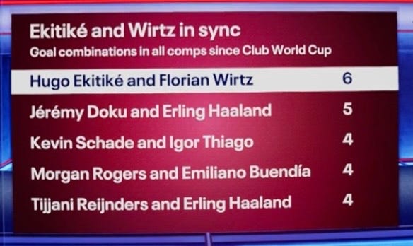 Hugo Ekitike has now been assisted by 10 different Liverpool players, thanks to Milos Kerkez getting his first for the club.