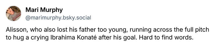 Liverpool’s third goal was encouraging in that the sequence featured each member of what you might term the front four. Konaté bundling the ball home for the fourth was perfect in light of the sorrow he has had to bear. All the feelings came out. Football, like life, seems to somehow find a way.