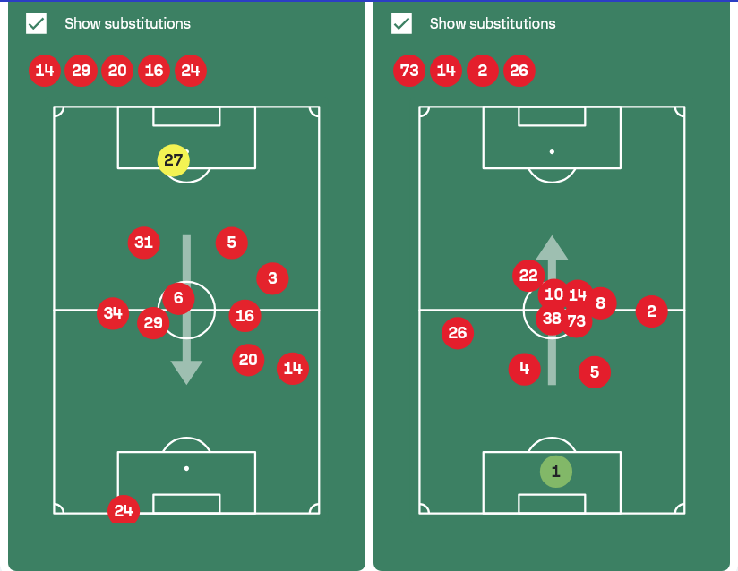 The Egyptian’s performance was disappointing after a better run out against Brighton last weekend. As per the below average positions map, every other Liverpool outfield player was - on average - basically on the half way line.