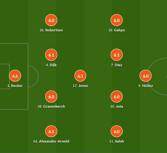 Reshuffles of this nature had occurred before, just not so extreme. In the defeat to Nottingham Forest, Jones came on for Konaté to leave the Reds with a back three featuring Conor Bradley and Kostas Tsimikas either side of Virgil van Dijk. Various in-game personnel changes left Liverpool fielding Bradley, van Dijk and Gravenberch in defence as they chased an equaliser at Fulham. Neither shift produced a goal.